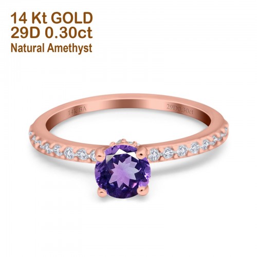 14K Yellow Gold 1.14ct Round Accent Vintage 6mm G SI Natural Amethyst Diamond Engagement Wedding Ring Size 6.5