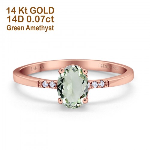 14K Yellow Gold 1.28ct Oval 8mmx6mm G SI Natural Green Amethyst Diamond Engagement Wedding Ring Size 6.5