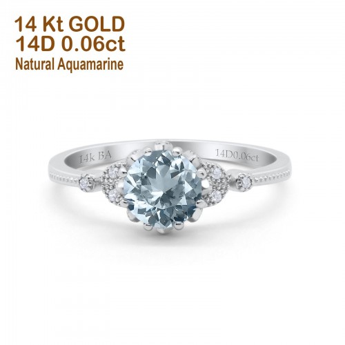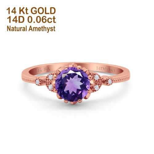 14K Yellow Gold 1.34ct Round Art Deco Fashion 7mm G SI Natural Amethyst Diamond Engagement Wedding Ring Size 6.5