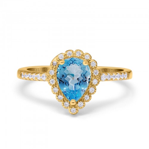 14K Yellow Gold 1.42ct Teardrop Pear Halo 8mmx6mm G SI Natural Blue Topaz Diamond Engagement Wedding Ring Size 6.5
