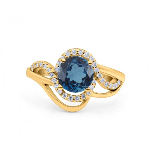 14K Yellow Gold 1.49ct Art Deco Round 7mm G SI London Blue Topaz Diamond Engagement Wedding Ring Size 6.5