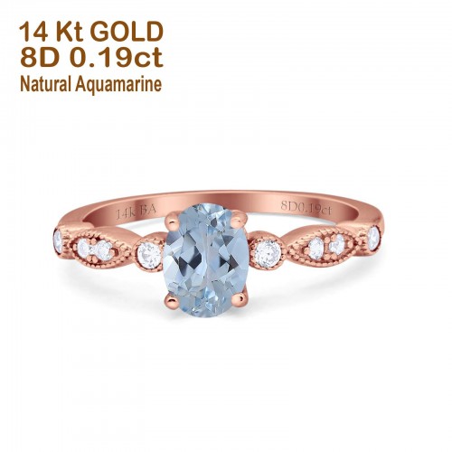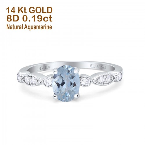 14K Yellow Gold 1.4ct Oval Vintage Style 8mmx6mm G SI Natural Aquamarine Diamond Engagement Wedding Ring Size 6.5