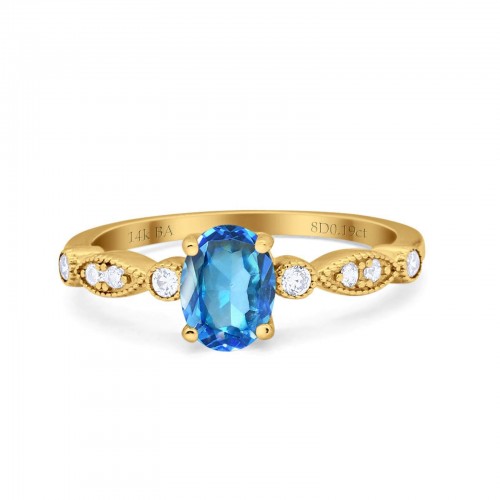 14K Yellow Gold 1.4ct Oval Vintage Style 8mmx6mm G SI Natural Blue Topaz Diamond Engagement Wedding Ring Size 6.5