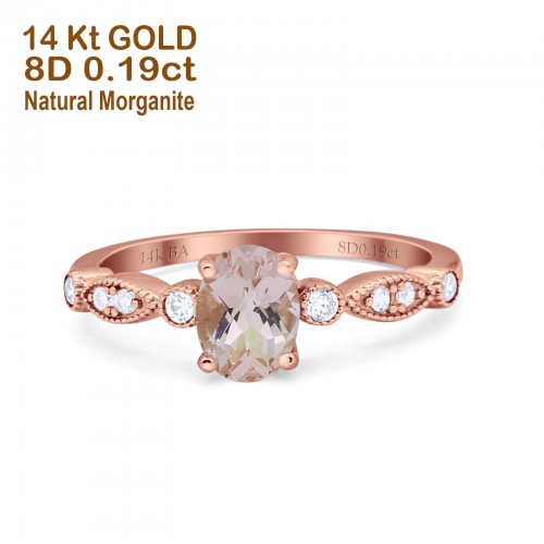 14K Yellow Gold 1.4ct Oval Vintage Style 8mmx6mm G SI Natural Morganite Diamond Engagement Wedding Ring Size 6.5