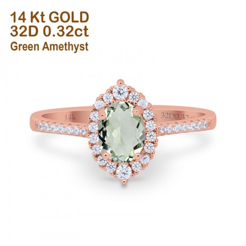 14K Yellow Gold 1.53ct Oval Natural Green Amethyst G SI Diamond Engagement Ring Size 6.5
