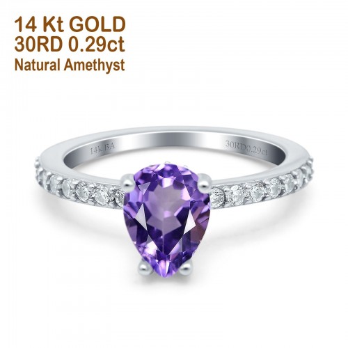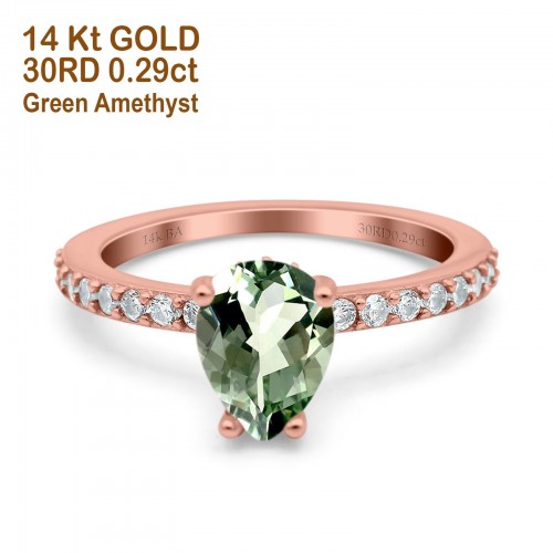 14K Yellow Gold 1.54ct Teardrop Pear Accent 8mmx6mm G SI Natural Green Amethyst Diamond Engagement Wedding Ring Size 6.5