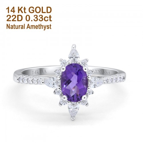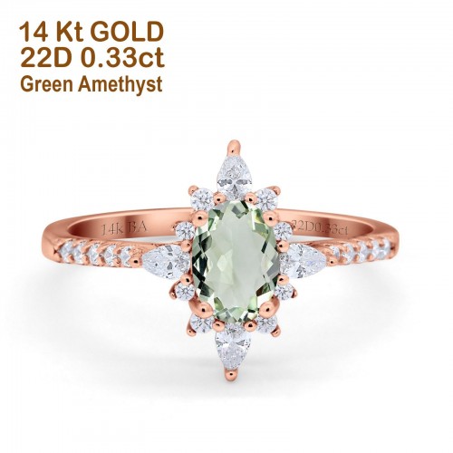 14K Yellow Gold 1.54ct Vintage Oval 8mmx6mm G SI Natural Green Amethyst Diamond Engagement Wedding Ring Size 6.5