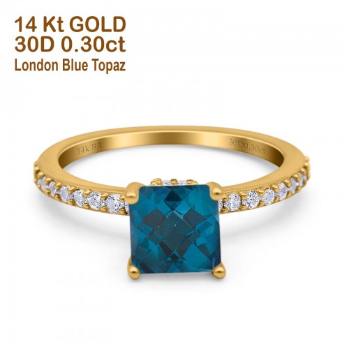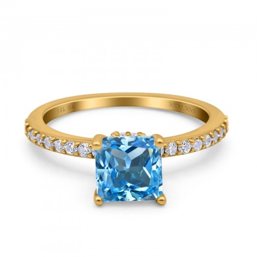 14K Yellow Gold 1.55ct Cushion Cut Vintage 7mm G SI Natural Blue Topaz Diamond Engagement Wedding Ring Size 6.5