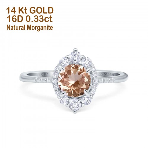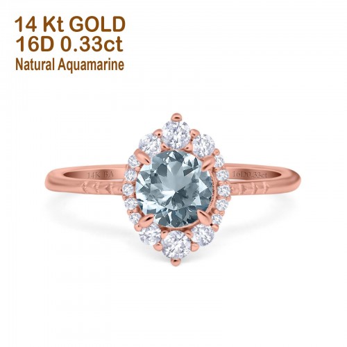 14K Yellow Gold 1.61ct Halo Vintage Round 7mm G SI Natural Aquamarine Diamond Engagement Wedding Ring Size 6.5