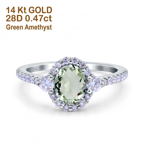 14K Yellow Gold 1.68ct Oval Natural Green Amethyst G SI Diamond Engagement Ring Size 6.5