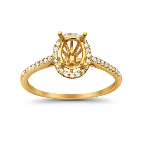 14K Yellow Gold .14ct Oval Diamond Semi Mount Ring Size 6.5