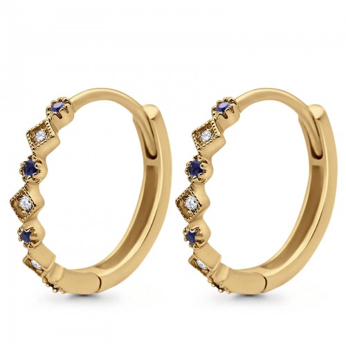 Be the first to review “14K Yellow Gold .16ct G SI Diamond & Blue Sapphire Hoop Huggie Earrings” Cancel reply