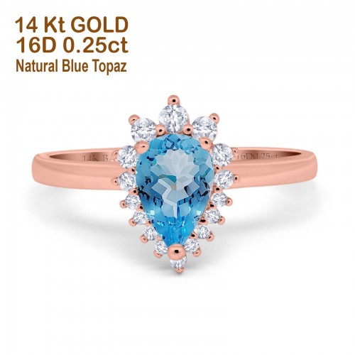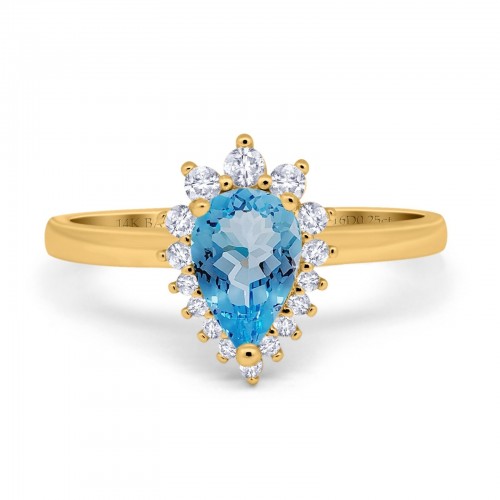 14K Yellow Gold 2.00ct Teardrop Pear 9mmx7mm G SI Natural Blue Topaz Diamond Engagement Wedding Ring Size 6.5
