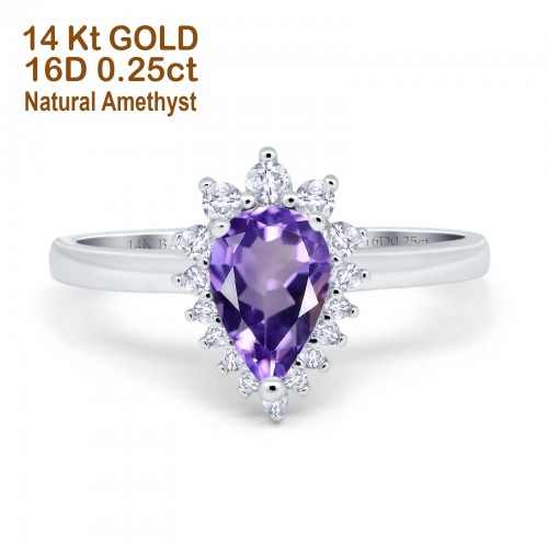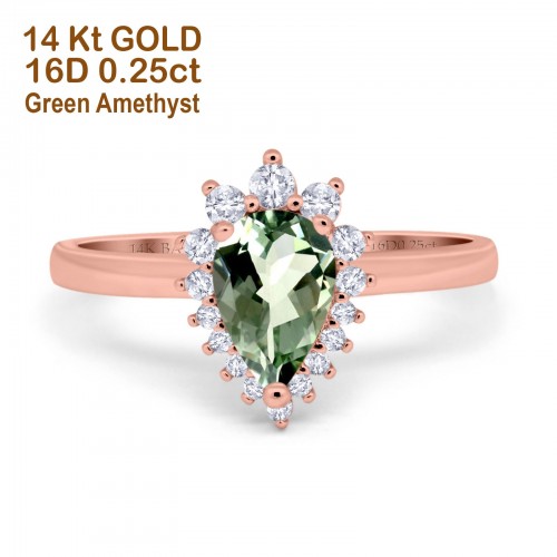 14K Yellow Gold 2.00ct Teardrop Pear 9mmx7mm G SI Natural Green Amethyst Diamond Engagement Wedding Ring Size 6.5