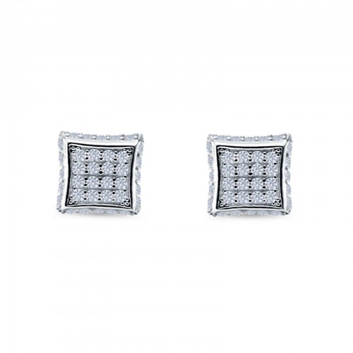 Infinity Twisted Two Tone Stud Earring Black CZ 925 Sterling Silver Wholesale 17mm