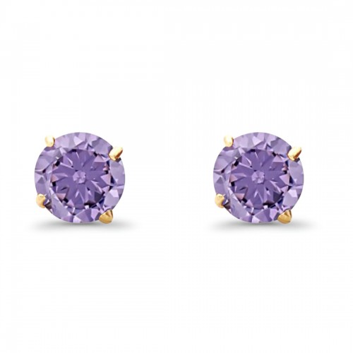 14K Yellow Gold 5mm Round Solitaire Basket Set Simulated Amethyst CZ Stud Earrings with Screw Back, Best Birthday Gift for Her