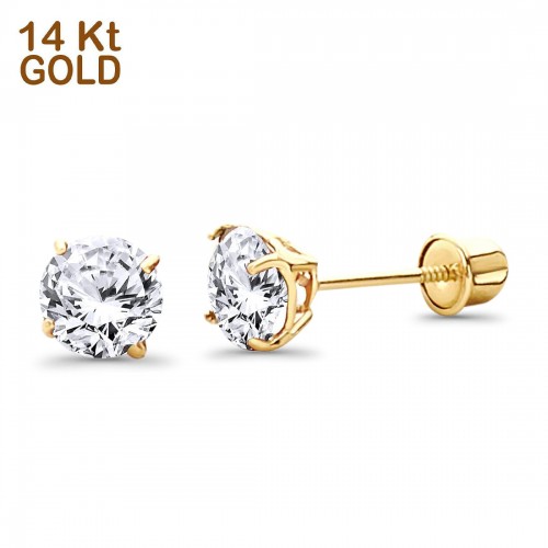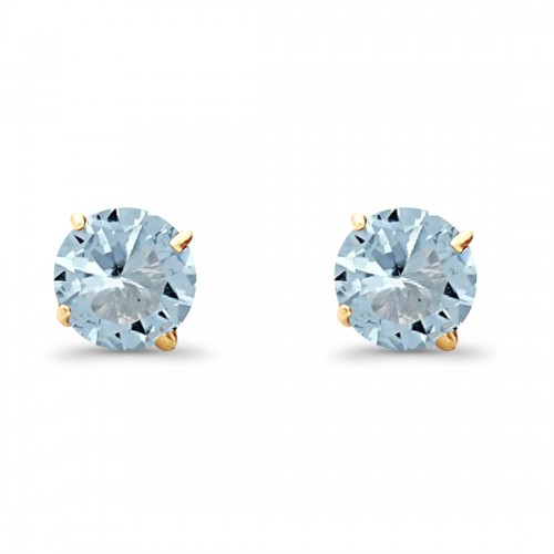 14K Yellow Gold 5mm Round Solitaire Basket Set Simulated Aquamarine CZ Stud Earrings with Screw Back, Best Birthday Gift for Her