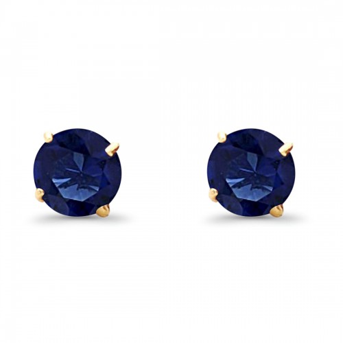 14K Yellow Gold 5mm Round Solitaire Basket Set Simulated Blue Sapphire CZ Stud Earrings with Screw Back, Best Birthday Gift for Her