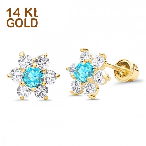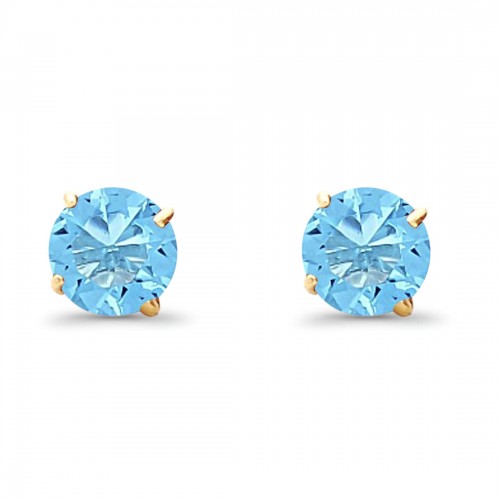 14K Yellow Gold 5mm Round Solitaire Basket Set Simulated Blue Topaz CZ Stud Earrings with Screw Back, Best Birthday Gift for Her