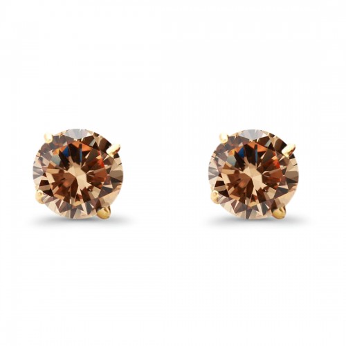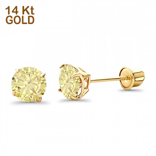 14K Yellow Gold 5mm Round Solitaire Basket Set Simulated Champagne CZ Stud Earrings with Screw Back, Best Birthday Gift for Her