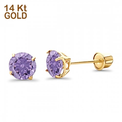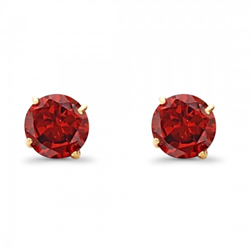 14K Yellow Gold 5mm Round Solitaire Basket Set Simulated Garnet CZ Stud Earrings with Screw Back, Best Birthday Gift for Her