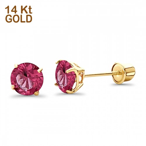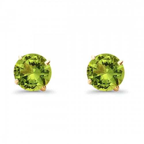 14K Yellow Gold 5mm Round Solitaire Basket Set Simulated Peridot CZ Stud Earrings with Screw Back, Best Birthday Gift for Her