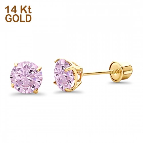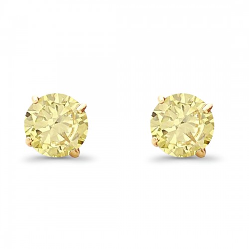 14K Yellow Gold 5mm Round Solitaire Basket Set Simulated Yellow CZ Stud Earrings with Screw Back, Best Birthday Gift for Her