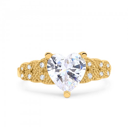 14K Yellow Gold Accent Heart Promise Ring Bridal Simulated CZ Wedding Engagement Ring Size 7 14K Gold