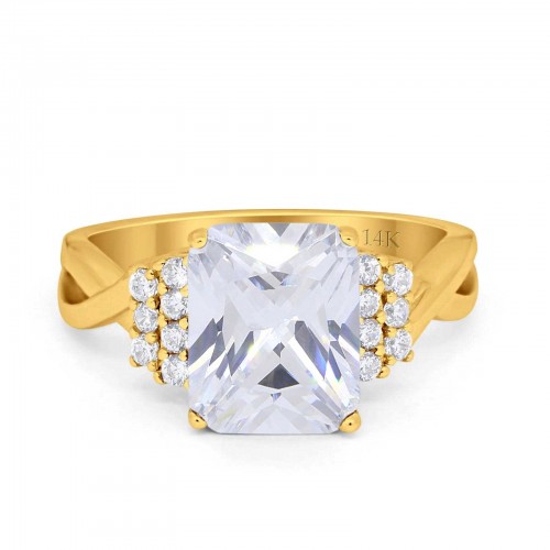14K Yellow Gold Art Deco Emerald Cut Simulated Cubic Zirconia Wedding Engagement Ring Size 7 14K Gold