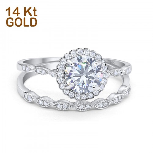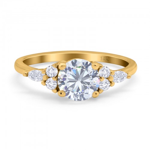 14K Yellow Gold Art Deco Engagement Ring Round Simulated Cubic Zirconia Size-7 14K Gold