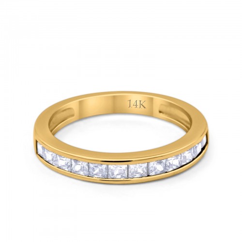 14K Yellow Gold Art Deco Half Eternity Band Wedding Engagement Ring Simulated CZ Size 7