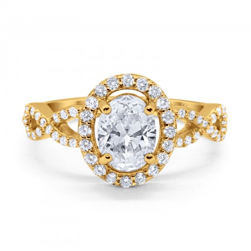 14K Yellow Gold Art Deco Halo Wedding Ring Oval Round Simulated Cubic Zirconia Size-7