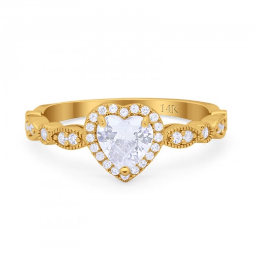 14K Yellow Gold Art Deco Heart Promise Wedding Engagement Ring Simulated CZ Size-7 14K Gold