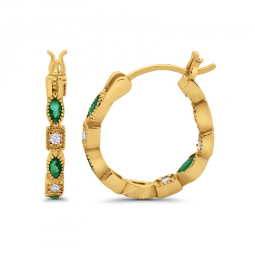 Be the first to review “14K Yellow Gold Art Deco Hoop Earrings Marquise Round Simulated Green Emerald CZ” Cancel reply