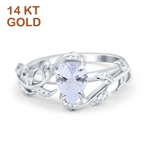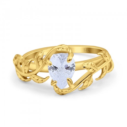 14K Yellow Gold Art Deco Leaves Pear Vintage Style Bridal Ring Simulated Cubic Zirconia Wedding Engagement Ring 7
