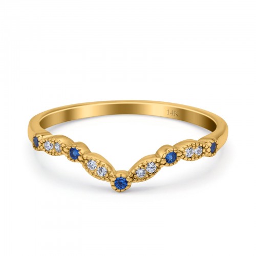 14K Yellow Gold Curved Marquise Half Eternity Stackable Ring Simulated Blue Sapphire CZ Size-7
