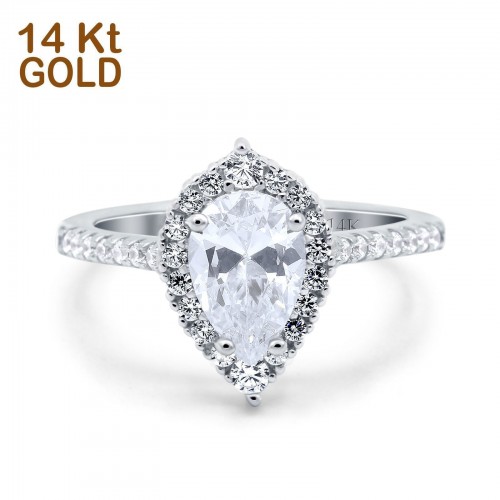 14K Yellow Gold Emerald Cut Halo Bridal Wedding Engagement Ring Simulated CZ Size-7 14K Gold