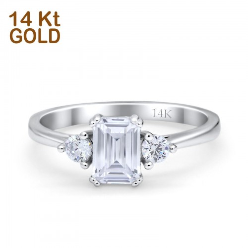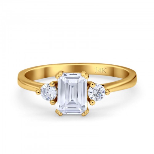 14K Yellow Gold Emerald Cut Wedding Engagement Ring Simulated CZ Size-7 14K Gold
