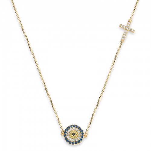 14K Yellow Gold Evil Eye Light Chain Necklace 17″ + 1″ Extension