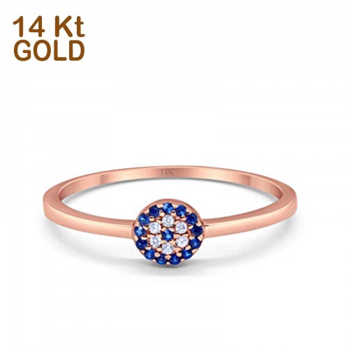 14K Yellow Gold Evil Eye Simulated Blue Sapphire Round Bridal CZ Wedding Engagement Ring Size-7 14K Gold