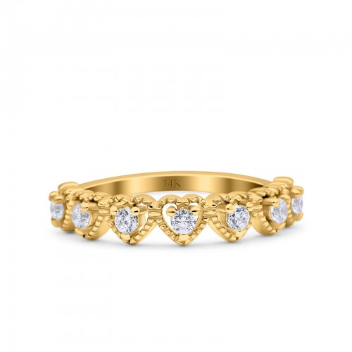 14K Yellow Gold Half Eternity Heart Ring Wedding Engagement Round Pave Band Simulated CZ Size 7
