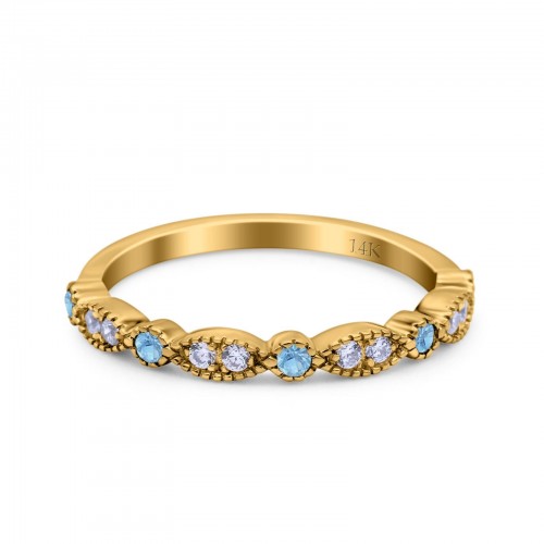 14K Yellow Gold Half Eternity Wedding Band Art Deco Design Simulated Aquamarine CZ Ring Size-7
