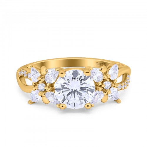 14K Yellow Gold Halo Floral Art Deco Wedding Engagement Ring Round Simulated Cubic Zirconia Size-7