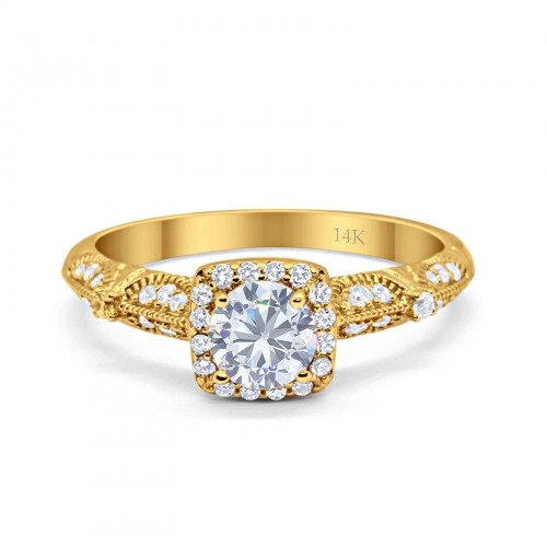 14K Yellow Gold Halo Round Bridal Wedding Engagement Ring Simulated CZ Size-7 14K Gold
