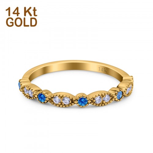 14K Yellow Gold Infinity Twist Simulated Blue Sapphire Marquise Art Deco Engagement Wedding Bridal Ring Round Simulated CZ Size-7