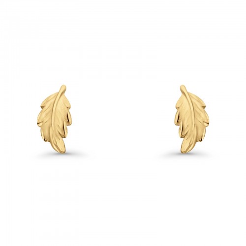 14K Yellow Gold Leaf Post Stud Earring 13mm
