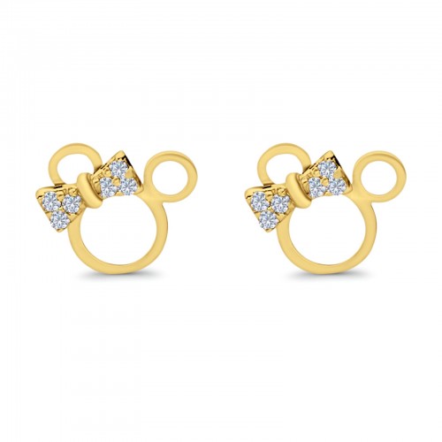 14K Yellow Gold Mouse Stud Earrings with Screw Back (8mm) Best Gift for Her