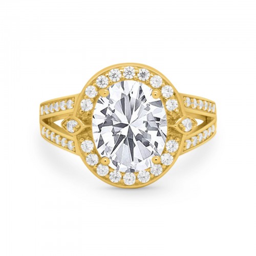 14K Yellow Gold Oval Art Deco Split Shank Bridal Wedding Engagement Ring Simulated CZ Size-7