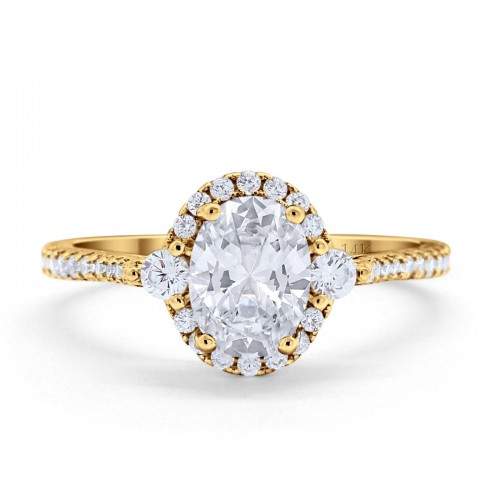 14K Yellow Gold Oval Engagement Ring Round Simulated Cubic Zirconia Size-7