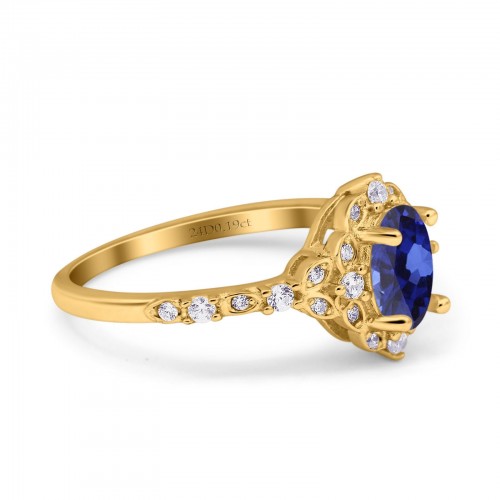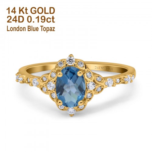 14K Yellow Gold Oval Nano Blue Sapphire 0.95ct G SI Diamond Engagement Ring Size 6.5